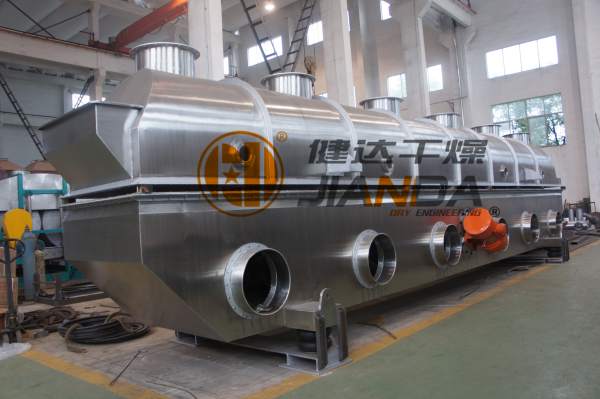 我司江苏健达干燥工程有限公司研发生产的ZLG-9×1.5型振动流化床干燥机振动源采用了振动角电机驱动,运转平稳,维修方便,噪音低,寿命长。流态化匀称,无空隙和吹穿现象,可以获得均匀的干燥、冷却制品。另外,该机采用全封闭式的结构,有效的防止了物料与空气交叉感染,作业环境清洁。机械效率与热效率高,比一般的干燥装置可节能30-60%,节能效果好。